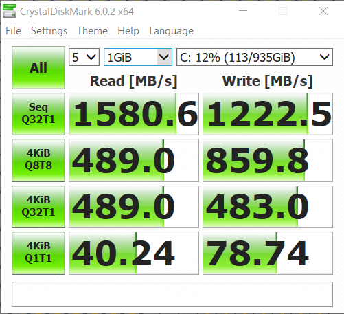 Емкость SSD накопителя может доходить до 1 ТБ. Скорость записи и чтения данных высокая — около 1222.5 Мб/c и 1580.6 Мб/с соответственно. Дополнительно радует наличие второго слота на материнке для установки еще одного накопителя.