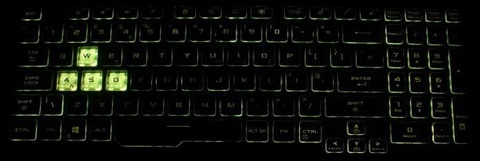 Кнопки W, A, S и D выделяются на фоне остальных. Дизайнерское решение в очередной раз подчеркивает принадлежность ноутбука к сегменту игровых. В пользу этого говорит и расширенный пробел.
