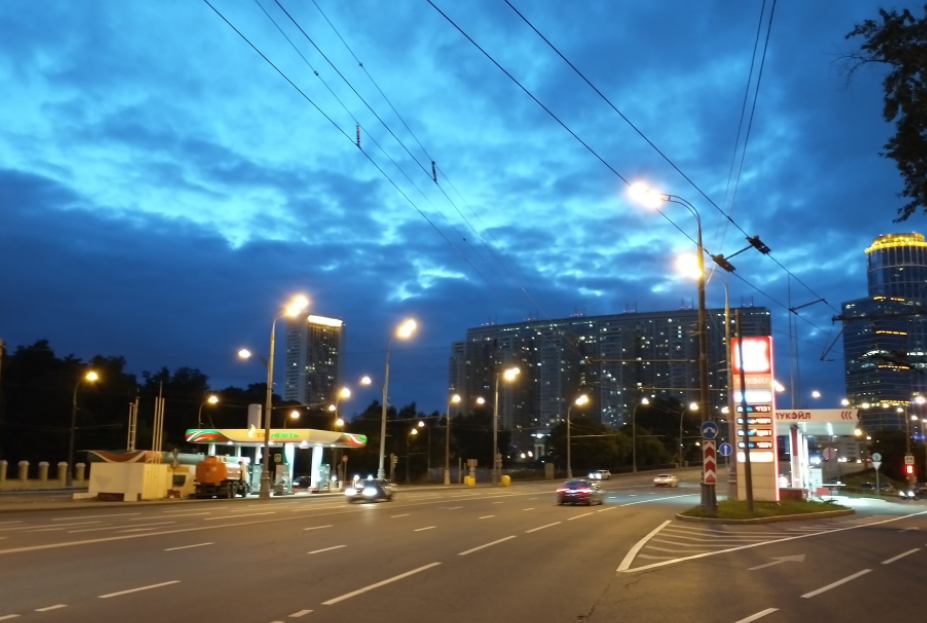 Ночью ситуация куда хуже — падает детализация, много цифровых шумов, никудышная контрастность. Вдобавок, криво обрабатываются источники света — лампы, фары автомобилей и т.д.