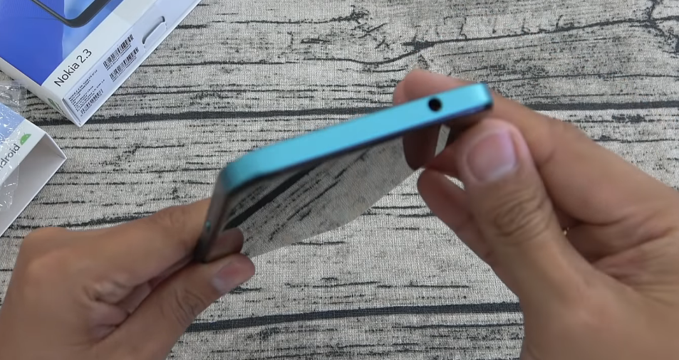 Лицевая часть выполнена по популярной концепции с каплевидным вырезом в верхней части экрана. Он тут не такой компактный, как у устройств подороже, но при эксплуатации это в глаза не бросается. Боковые рамки достаточно тонкие, чего не скажешь про нижний отступ. Вдобавок ко всему на последнем разработчик разместил надпись Nokia. Выглядит это архаично и подобное решение фанаты бренда отругали еще после презентации.
