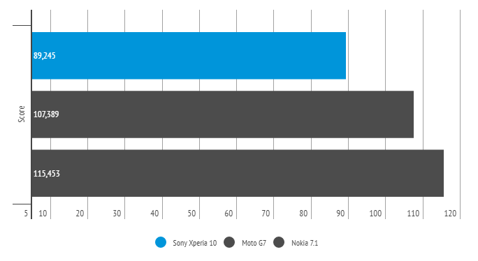 Sony Xperia 10 получил процессор Snapdragon 630, который дополняется графическим ускорителем Adreno 508. Конфигурация памяти — 3/64 ГБ. Объём встроенной памяти можно увеличить при помощи флеш карт microSD до 512 ГБ.